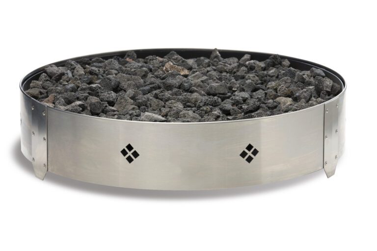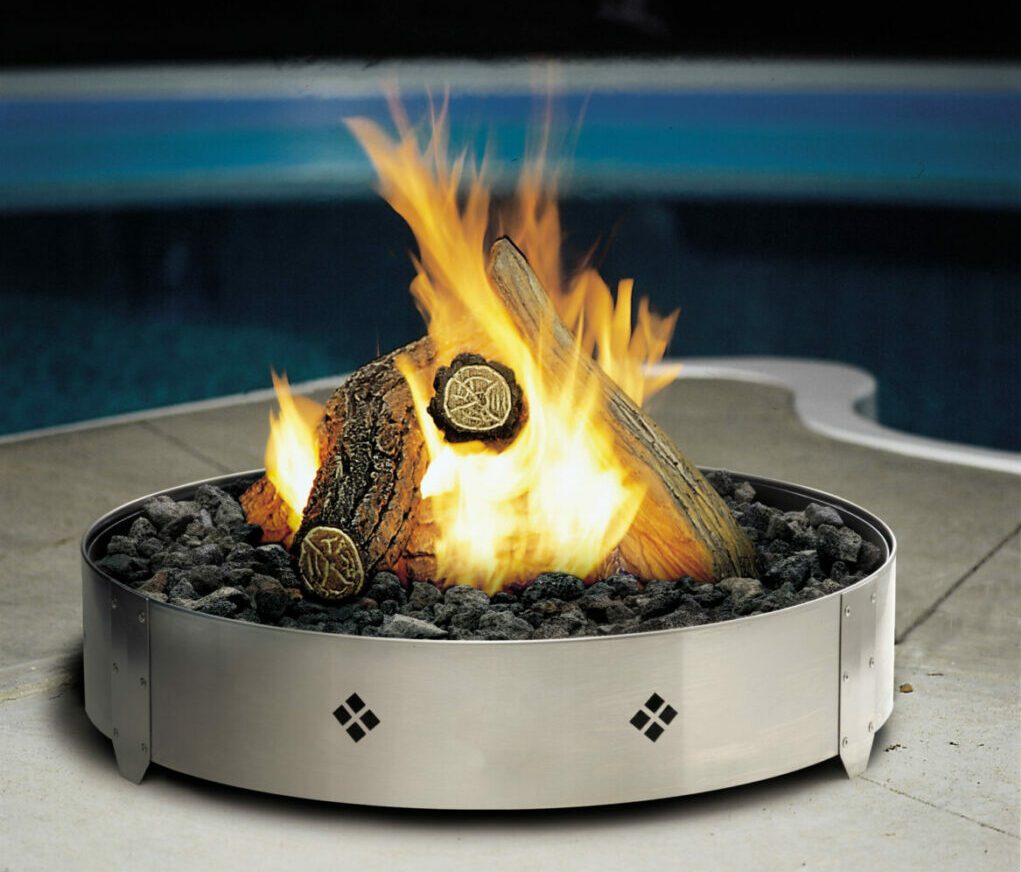 The Outdoor Fire Pit comes in either natural or LP gas (propane), and lava rock is provided with either option. You’ll be able to customize your Outdoor Fire Pit with your choice of decorative stones, five different colors of crushed glass media, or a log set. Other worthwhile options include a fire bowl, a stainless-steel trim ring, and a tank cover.